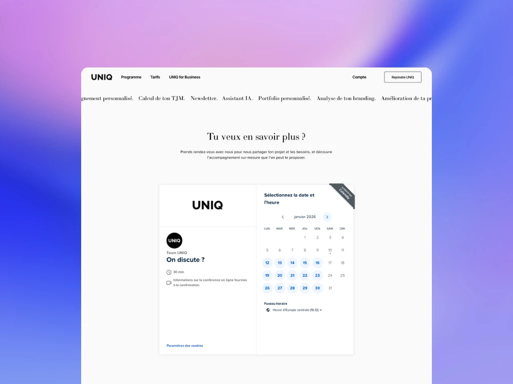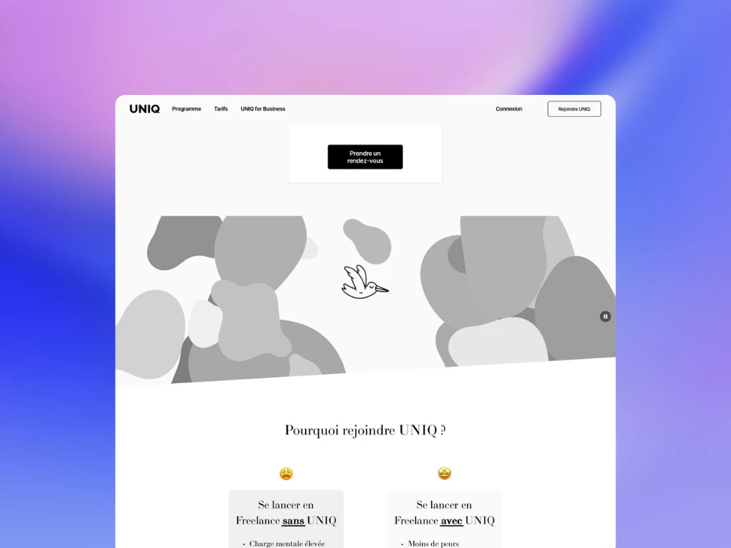 UNIQ Freelance avait besoin d'une plateforme centralisée pour accompagner ses membres dans leur passage au freelance. L'objectif : offrir un espace membre intuitif donnant accès à des formations vidéo, documents administratifs, templates de contrats, et outils de gestion, le tout dans un environnement sécurisé et responsive.